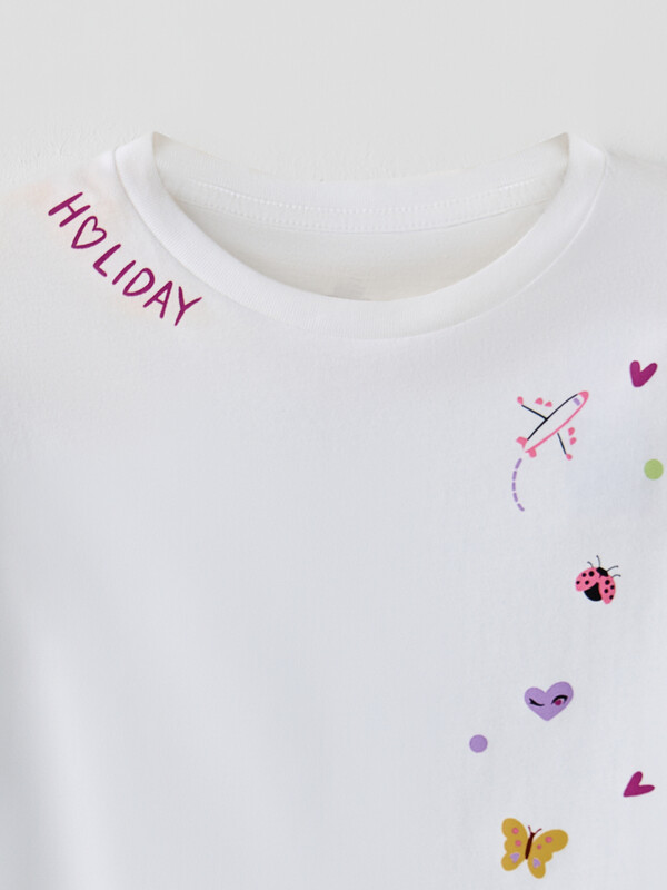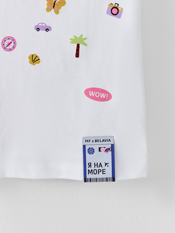 Футболка выполнена из натуральной кулирки — этот материал отличается особой мягкостью и легкостью. Он позволяет коже дышать в жаркую погоду и не вызывает раздражения, что особенно важно для детей.