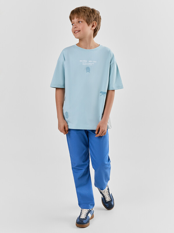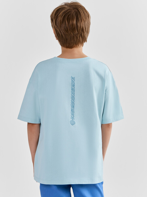 Футболка для мальчиков свободного силуэта, выполненная из хлопковой кулирки. Этот материал обеспечивает мягкость, обладает дышащими свойства и гипоаллергенностью, делая изделие особенно комфортным. Модель с короткими рукавами и круглой горловиной идеально подходит для активных мальчиков. Спущенная линия плеча добавляет особого комфорта и свободы движений, что делает эту футболку отличным выбором для повседневного ношения. Стильно и удобно — эта футболка станет незаменимой вещью в гардеробе каждого мальчика!