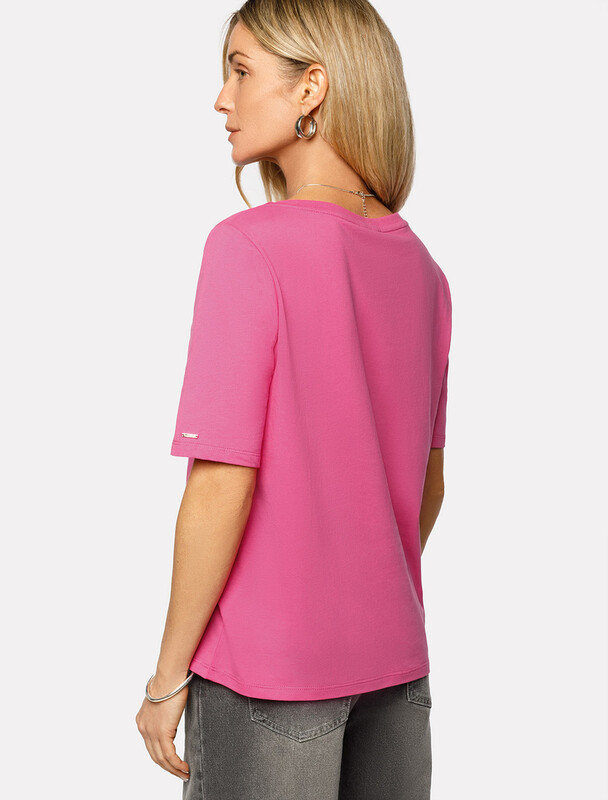 Базовая модель свободного кроя c V-вырезом легко впишется в повседненвый гардероб. Изделие хорошо держит форму и обеспечивает комфортный микроклимат в течение дня.