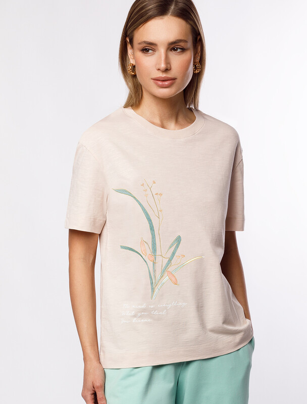 Главная страница - Каталог - Женская одежда оптом - Женская повседневная одежда - Женские футболки, майки - Футболка из фактурного полотна с авторским принтом