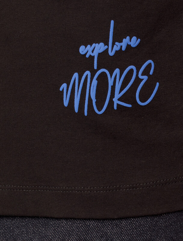 Принт выполнен пуффом и красками с устойчивым покрытием. Футболка выполнена из премиального хлопка. Особым преимуществом является наличие эластана в составе изделия. Очень приятная на ощупь и комфортная при носке, футболка сохранит свой безупречный внешний вид в течении долгого времени. Модель дополнена нашивкой из эко-кожи с логотипом VILATTE.
