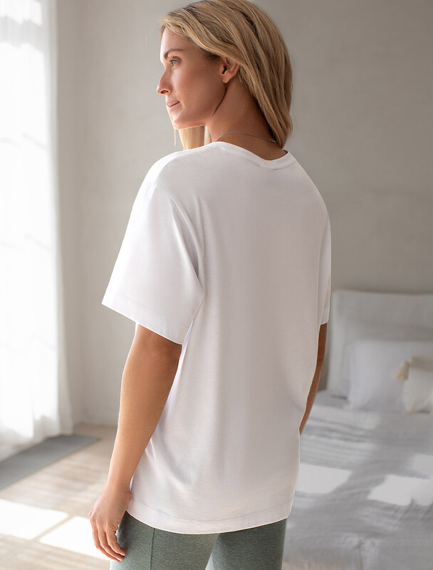 Футболка прямого кроя выполнена из 100% хлопка. Базовая модель с лаконичным авторским принтом легко впишется в повседневный гардероб. Хорошо держит форму и обеспечивает комфортный микроклимат в течение дня.