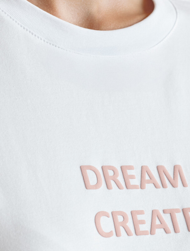 Перевод принта: Dream, create, share, inspire — мечтай, создавай, делись, вдохновляй.