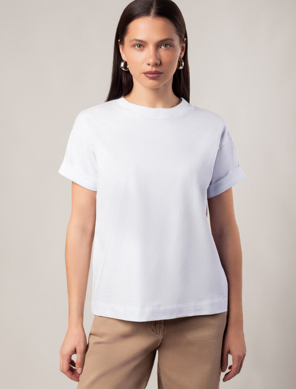 Футболка из премиального хлопка, высокое качество хлопковых волокон обеспечивает комфорт в любое время года. Горловина выполнена из рибаны в тон изделия, Рукава с подворотами и золотистым логотипом бренда. Авторский принт нанесен фактурными красками с устойчивым покрытием. За счет эластана в составе идеально держит форму и сохраняет внешний вид в течение долговременного использования. Универсальная вещь для ваших стилистических решений.