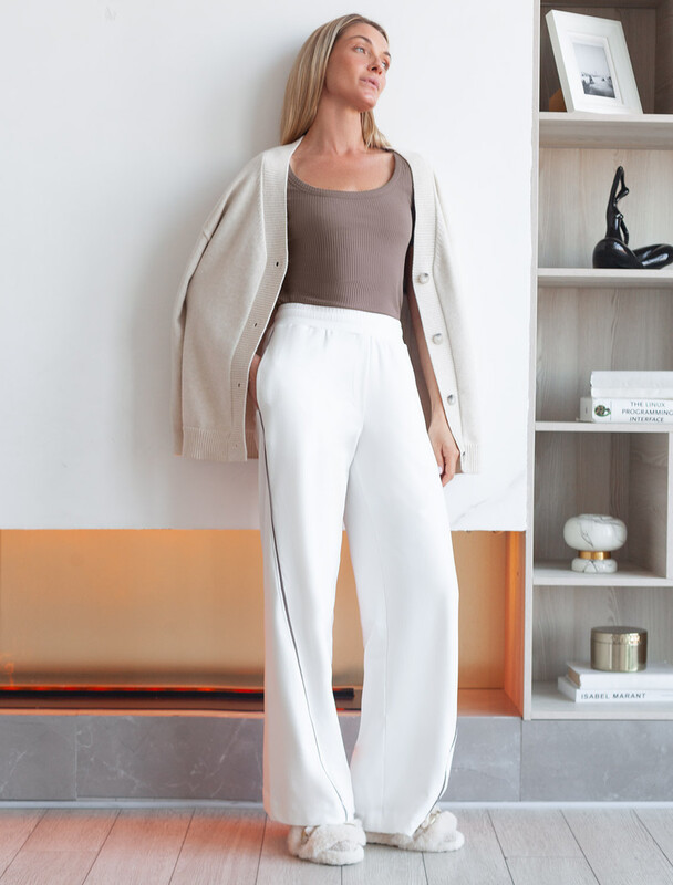 Футболка выполнена из трикотажа в широкий рубчик. Модель с круглым вырезом. Эластичный хлопковый трикотаж сидит по фигуре, не сковывает движений и очень комфортный в носке. Фактура вертикальных полос визуально стройнит и вытягивает силуэт. Базовое изделие хорошо впишется в любой гардероб. Идеально подходит для многослойных образов.