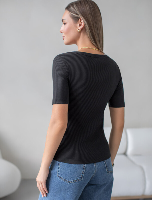 Главная страница - Каталог - Женская одежда оптом - Женская повседневная одежда - Женские футболки, майки - Футболка из трикотажа в широкий рубчик