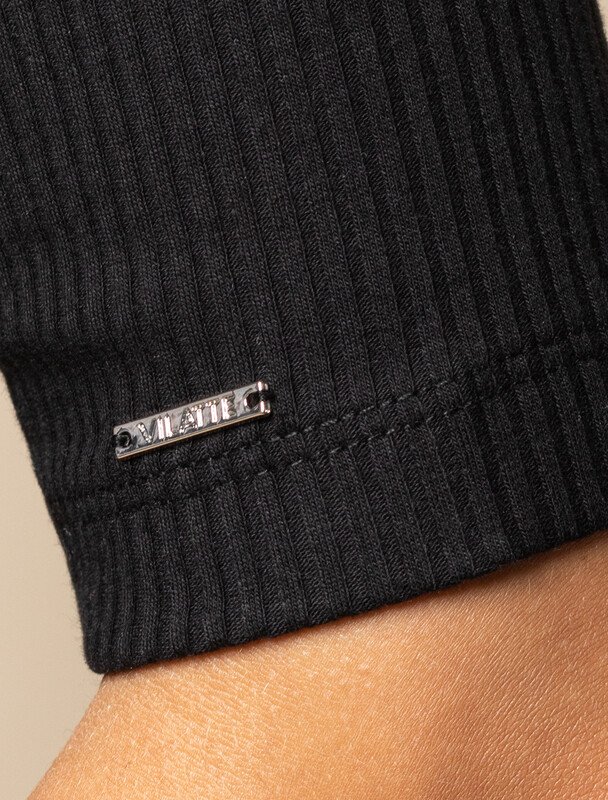 Футболка выполнена из фактурного трикотажа в широкий рубчик. Модель идеально сидит по фигуре не сковывая движения. Хлопковый трикотаж поддерживает оптимальную температуру тела, поэтому в изделии будет комфортно в течении всего дня. Наличие эластана в составе гарантирует формоустойчивости. Базовая модель впишется в любой гардероб.