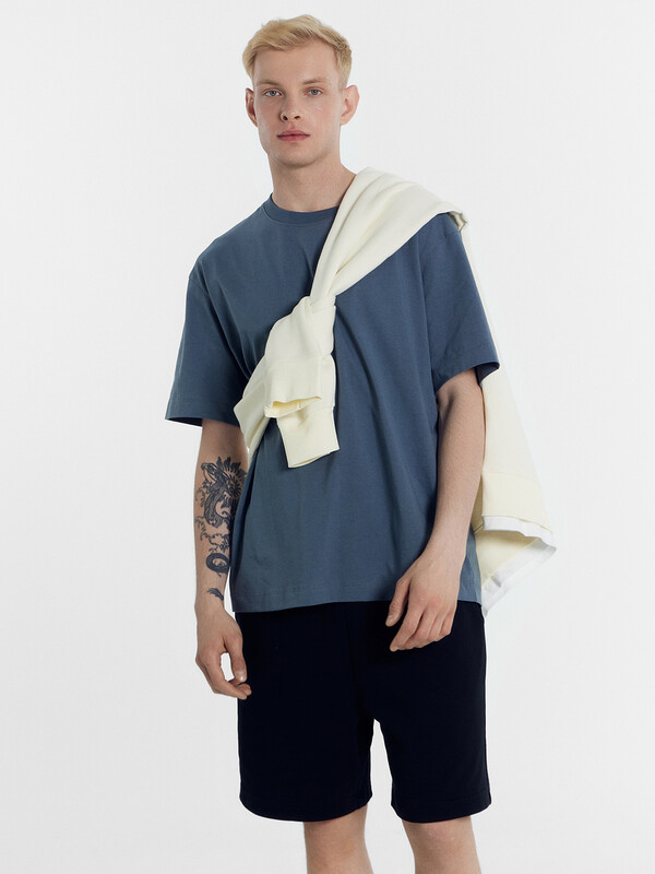 Футболка изготовлена из трикотажного полотна кулирка. Футболка свободная, прямого силуэта.