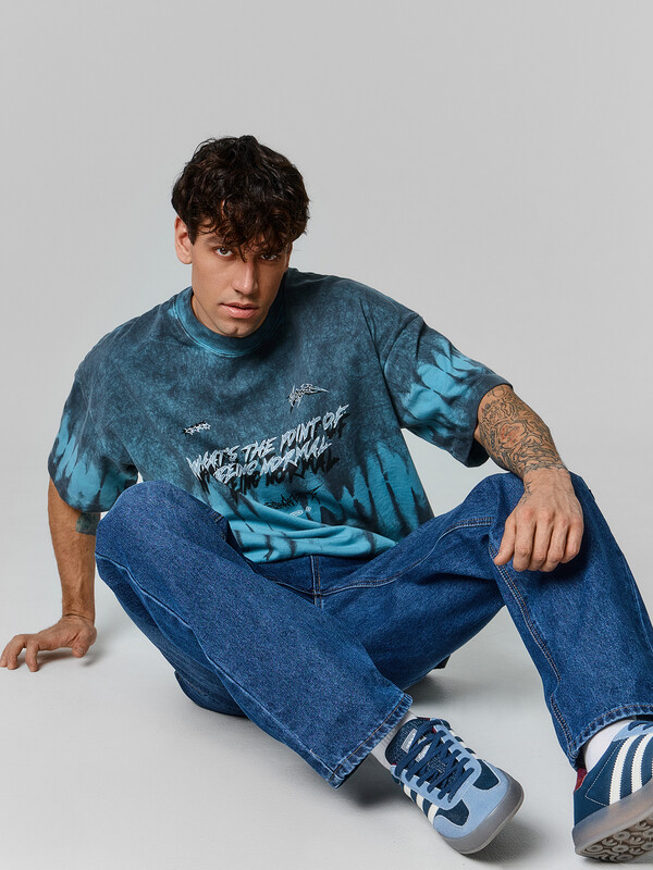 Футболка прямого силуэта. Горловина округлой формы обработана обтачкой из рибаны. Шов втачивания обтачки по спинке закрыт бейкой из основного полотна. Рукава втачные, корткие. Линия плеча слегка спущена.Нижние срезы футболки и рукавов обработаны швом вподгибку.
