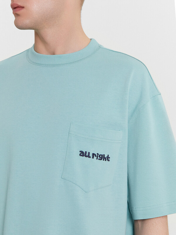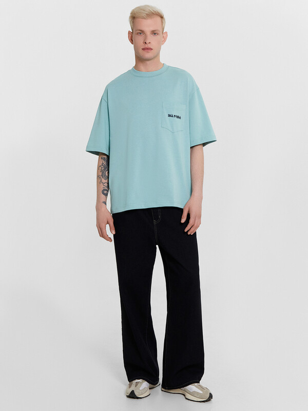 Футболка свободная укороченная, оверсайз. Горловина округлой формы обработана обтачкой из рибаны. Рукава втачные, корткие. Линия плеча спущена. На детали переда накладной карман (мод 111899-1). Нижние срезы футболки и рукавов обработаны швом вподгибку.