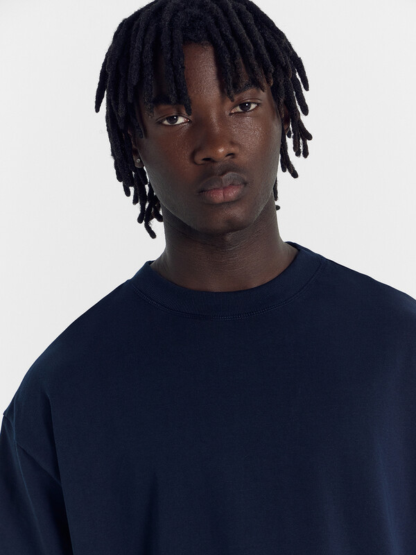 Футболка свободная укороченная, оверсайз. Горловина округлой формы обработана обтачкой из рибаны. Рукава втачные, корткие. Линия плеча спущена. На детали переда накладной карман (мод 111899-1). Нижние срезы футболки и рукавов обработаны швом вподгибку.
