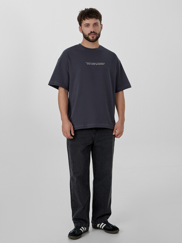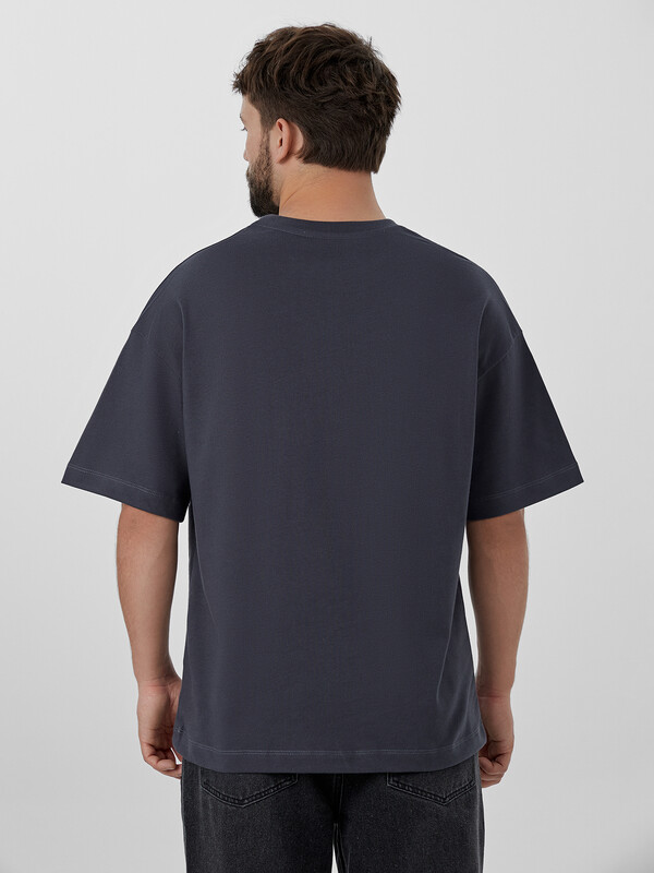 Футболка прямая, свободная. Горловина округлой формы обработана обтачкой из рибаны. Шов втачивания обтачки по спинке закрыт бейкой из основного полотна. Рукава втачные, корткие. Линия плеча спущена. Нижние срезы футболки и рукавов обработаны швом вподгибку.