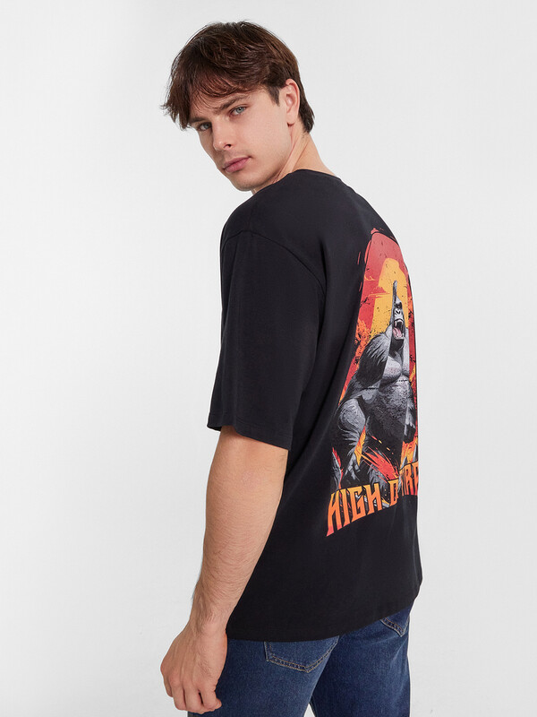 Футболка свободного силуэта. Перед и спинка цельнокроеные.Горловина круглой