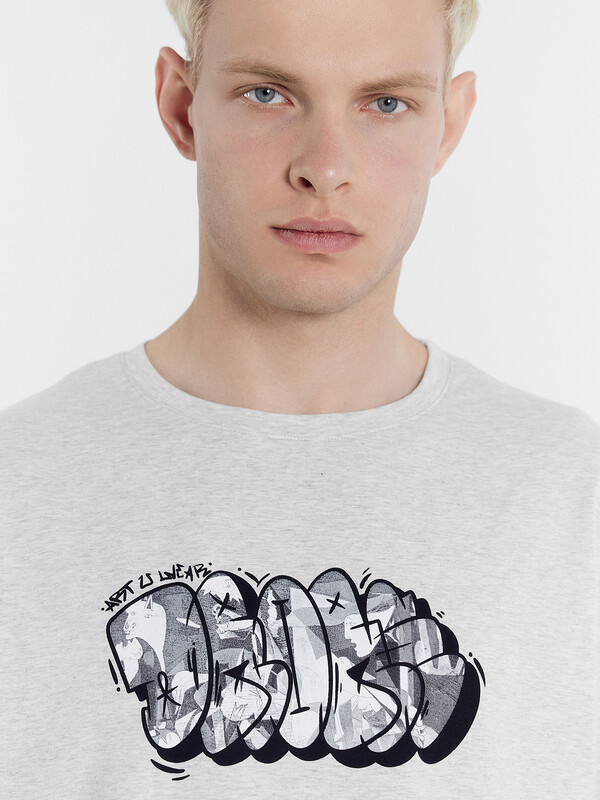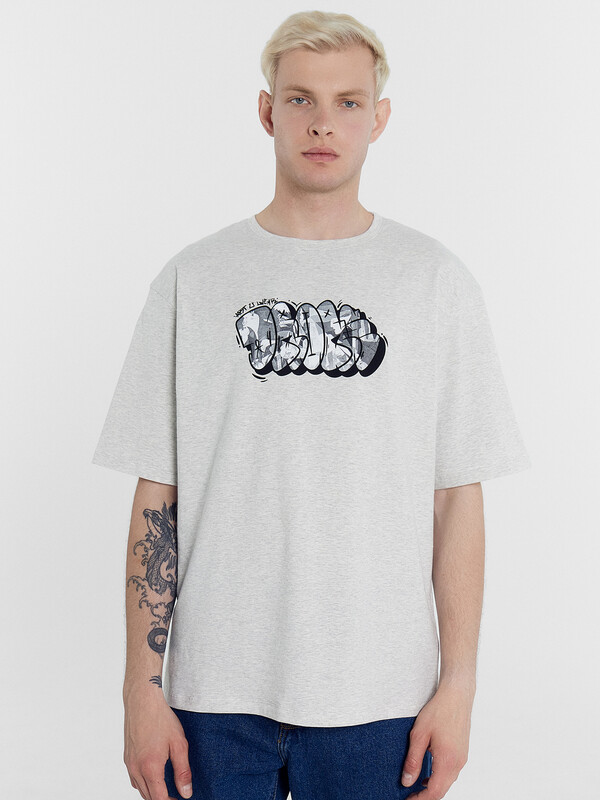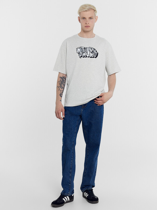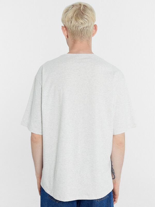 Футболка свободного силуэта. Перед и спинка цельнокроеные.Горловина круглой