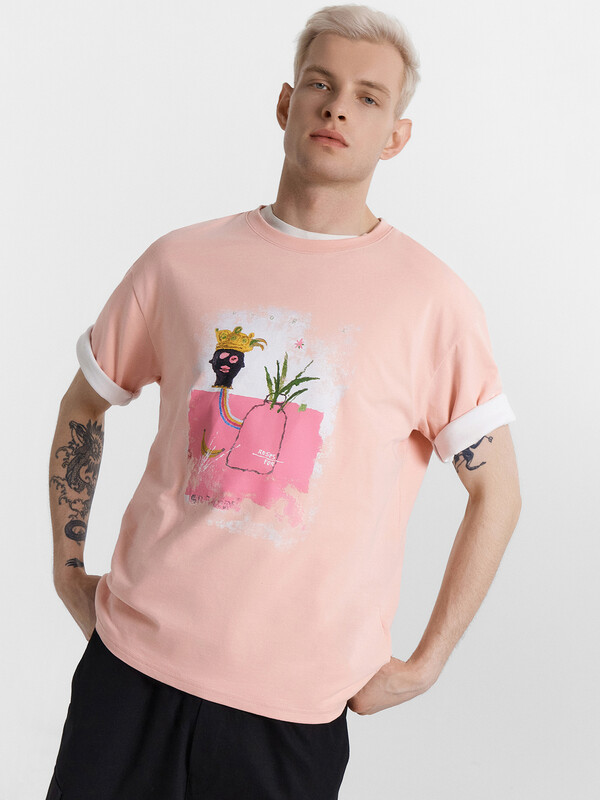Мужская футболка свободного силуэта – обязательный элемент гардероба для тех, кто ценит комфорт и стиль. Модель с круглой горловиной, спущенными плечами и углубленной проймой обеспечивает свободу движений и непринужденный вид. Короткие рукава добавляют легкости и подходят для любого времени года. Для выполнения этой модели использовали хлопковую кулирку – легкий трикотажный материал, известный своей гладкостью и отличной воздухопроницаемостью, что делает ее идеальной для повседневной носки. Кулирка не только приятна к телу, но и хорошо держит форму, обеспечивая долговечность изделия.