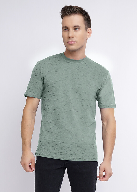 Фуфайка с коротким рукавом среднего объема, круглым вырезом горловины, которая оформлена обтачкой из рибаны, выполненная из набивного полотна.