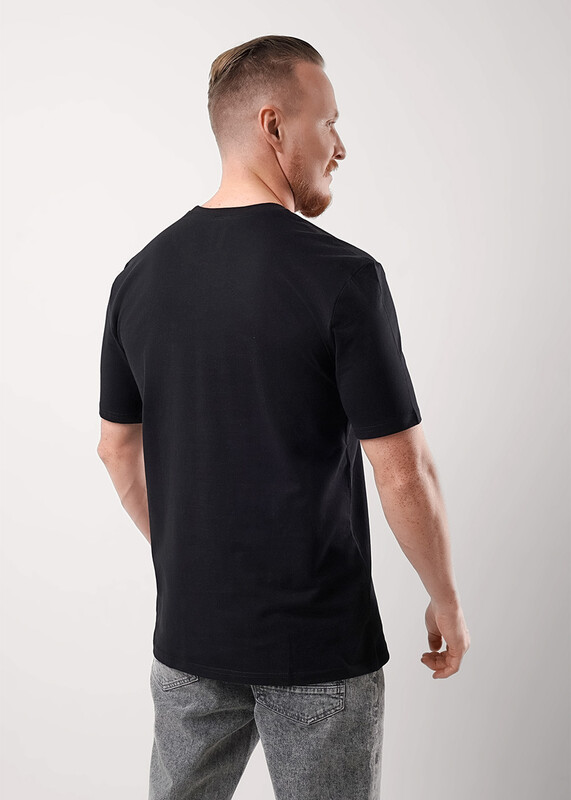 Фуфайка с коротким рукавом среднего объема, круглым вырезом горловины, которая оформлена обтачкой из рибаны.