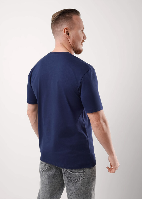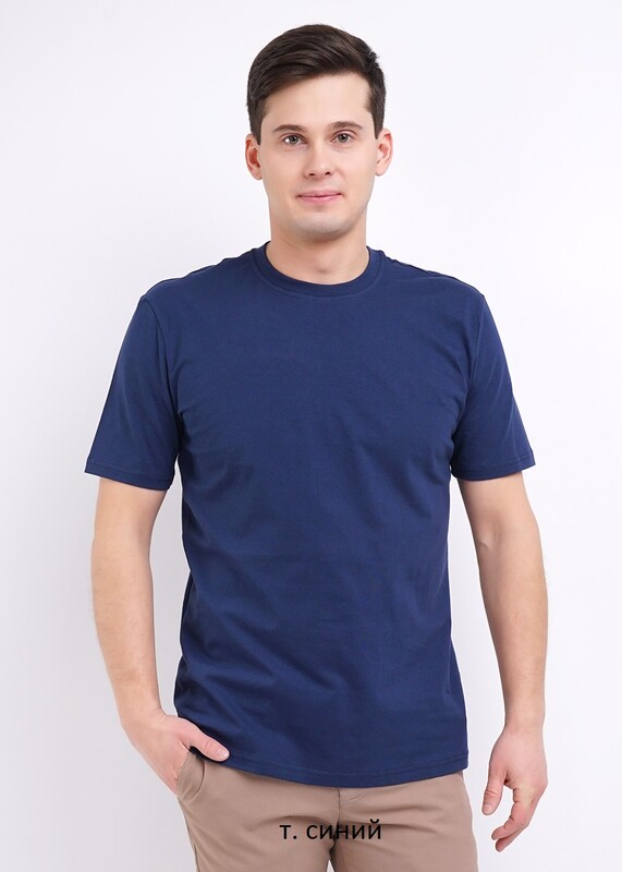 Фуфайка с коротким рукавом среднего объема, круглым вырезом горловины, которая оформлена обтачкой из рибаны.