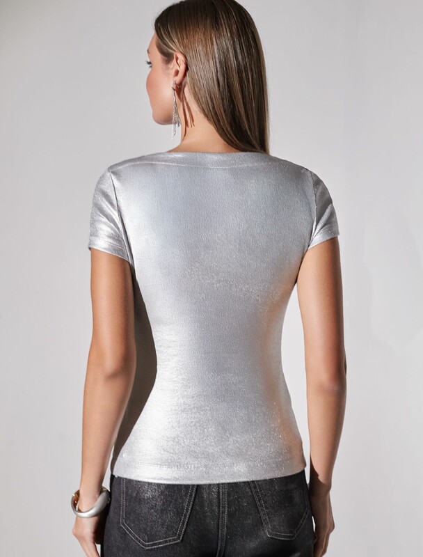 Повседневная футболка  универсальна: она сочетается с джинсами, юбками или строгими брюками — легко создать как деловой образ для офиса, так и наряд для вечеринки или ужина вне дома. Матовое покрытие создает благородный блеск без лишней яркости, благодаря чему футболка смотрится свежо и актуально.