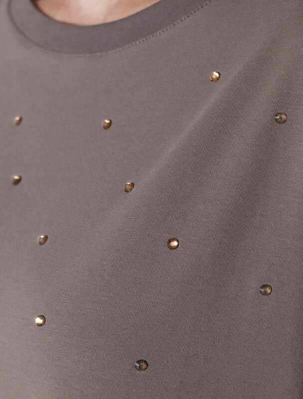 Футболка оверсайз с принтом стразами из премиального хлопка с эластаном