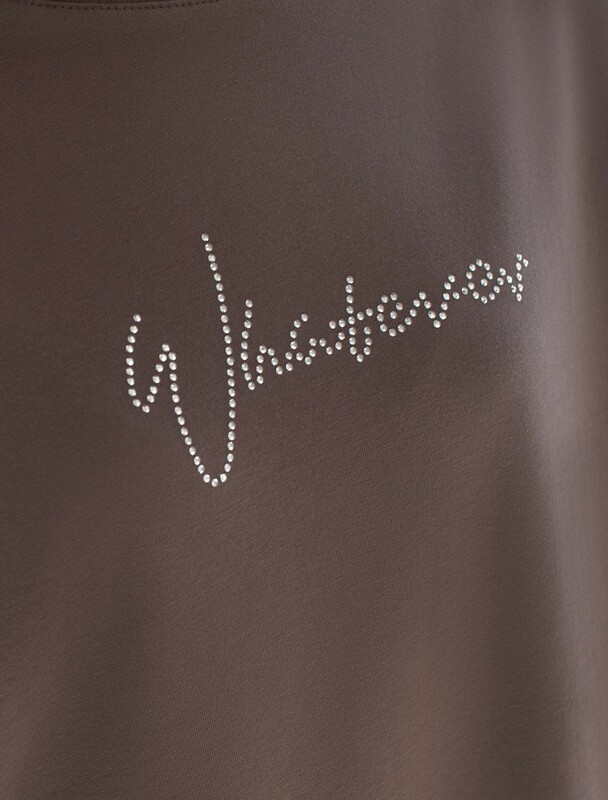 Главная страница - Каталог - Женская одежда оптом - Женская повседневная одежда - Женские футболки, майки - Футболка оверсайз с принтом стразами из премиального хлопка с эластаном