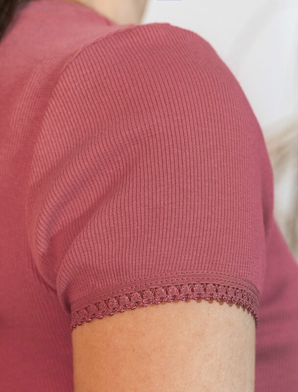 Главная страница - Каталог - Женская одежда оптом - Женская повседневная одежда - Женские футболки, майки - Футболка с круглым вырезом из фактурного трикотажа в рубчик