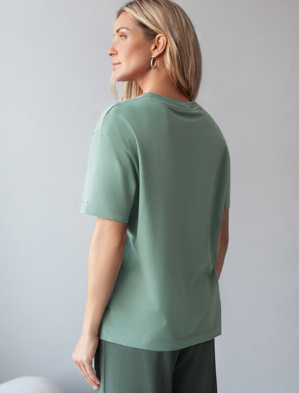 Свободный крой футболки дарит удобство и не стесняет движений, что делает ее идеальной для повседневной носки или активного отдыха, подчеркивает современный взгляд на моду. На рукаве металлический логотип бренда. Подойдет девушкам и женщинам на любую фигуру, вы будете чувствовать себя в ней уверенно и комфортно. Отлично впишется в гардероб благодаря универсальному дизайну, который легко сочетать с джинсами, шортами или спортивными брюками