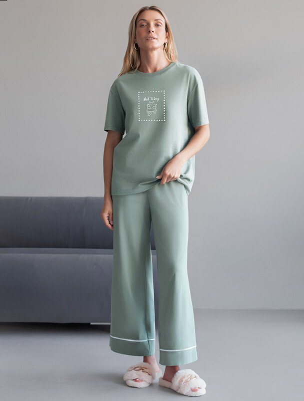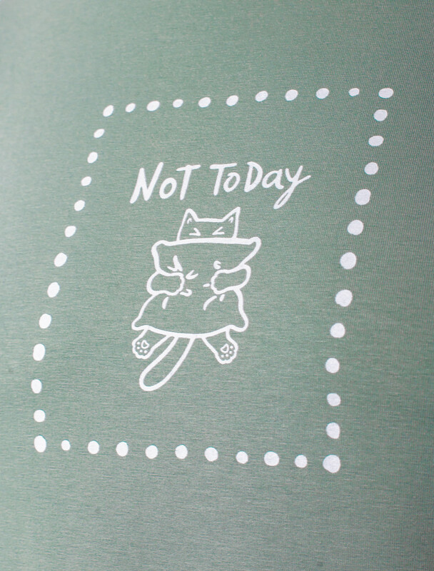 Особое внимание привлекает стильный принт в виде милого котика с минималистичной надписью. Перевод надписи: Not today - Не сегодня. Принт выполнен красками с устойчивым покрытием, который добавляет изделию оригинальности и позволяет выразить индивидуальность.