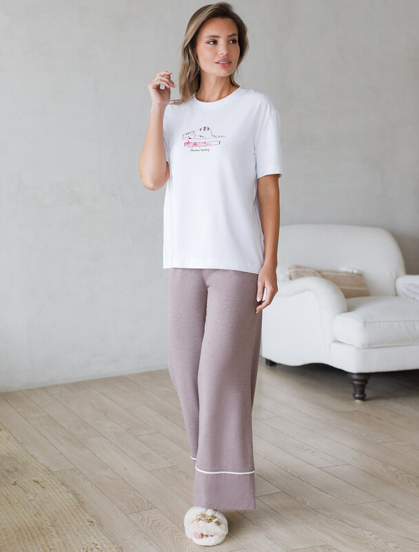 Главная страница - Каталог - Женская одежда оптом - Женская повседневная одежда - Женские футболки, майки - Футболка с принтом свободная эластичная из премиального хлопка