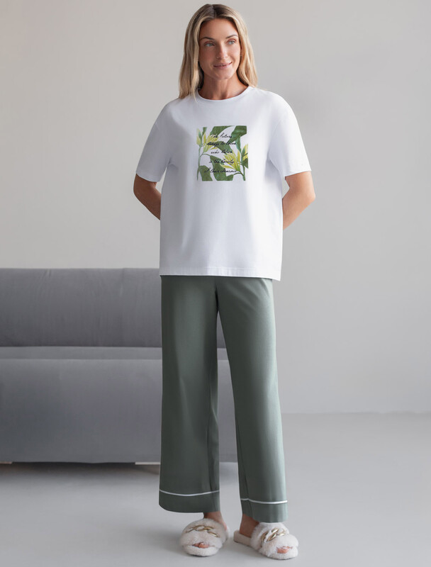 Главная страница - Каталог - Женская одежда оптом - Женская повседневная одежда - Женские футболки, майки - Футболка с принтом свободная эластичная из премиального хлопка