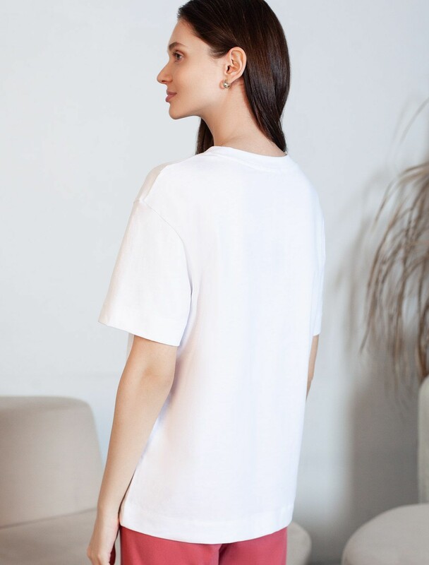 Главная страница - Каталог - Женская одежда оптом - Женская повседневная одежда - Женские футболки, майки - Футболка с принтом свободная из премиального 100% хлопка