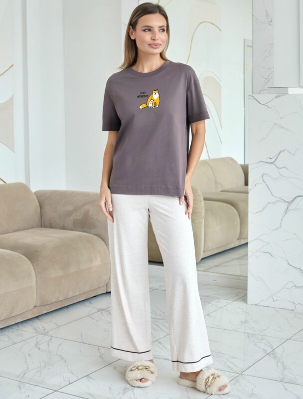 Главная страница - Каталог - Женская одежда оптом - Женская повседневная одежда - Женские футболки, майки - Футболка с принтом свободная из премиального 100% хлопка