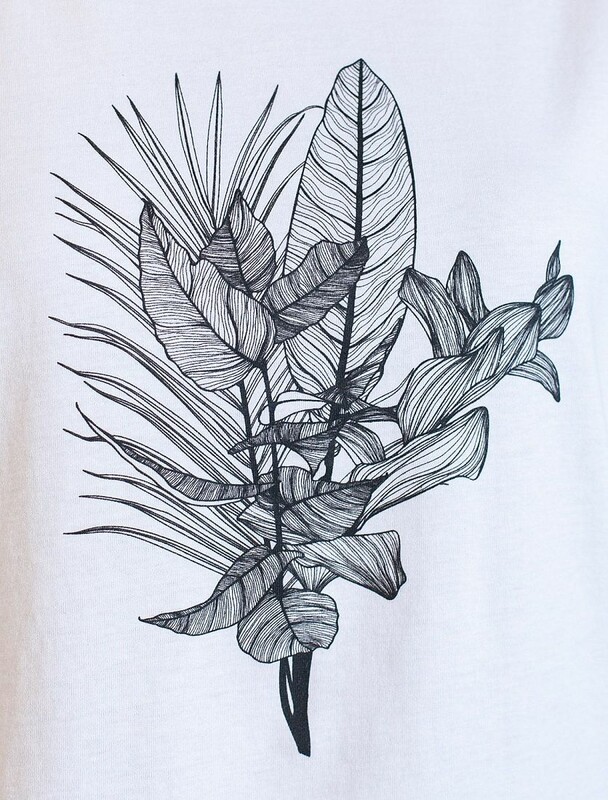 Футболка черного цвета изготовлена из премиального 100% хлопка, благодаря чему изделие приятно прилегает к телу, не вызывает дискомфорта и идеально подходит для чувствительной кожи.  Натуральный материал сохраняет форму и цвет после множества стирок, обеспечивая долговечность изделия, а его высокая воздухопроницаемость создает ощущение свежести даже в течение долгого дня. Особое внимание привлекает стильный принт контрастного цвета в виде тропических растений. Принт выполнен красками с устойчивым покрытием, который добавляет изделию оригинальности и позволяет выразить индивидуальность. Свободный крой футболки дарит удобство и не стесняет движений, что делает ее идеальной для повседневной носки или активного отдыха, подчеркивает современный взгляд на моду. Подойдет девушкам и женщинам на любую фигуру, вы будете чувствовать себя в ней уверенно и комфортно. Лаконичный современный принт делает изделие универсальным: можно создавать стильные образы для прогулок, встреч, занятий спортом и домашних дел. Базовая футб