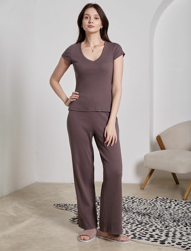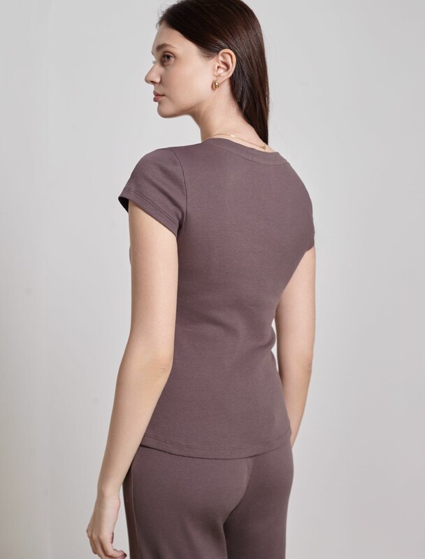 Главная страница - Каталог - Женская одежда оптом - Женская повседневная одежда - Женские футболки, майки - Футболка с V вырезом из фактурного трикотажа в рубчик
