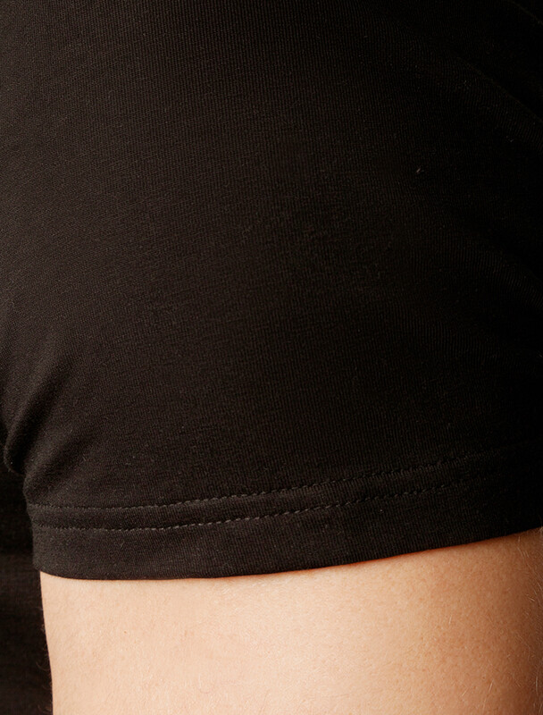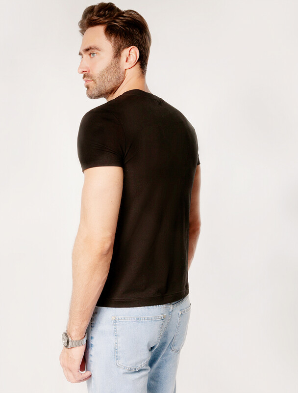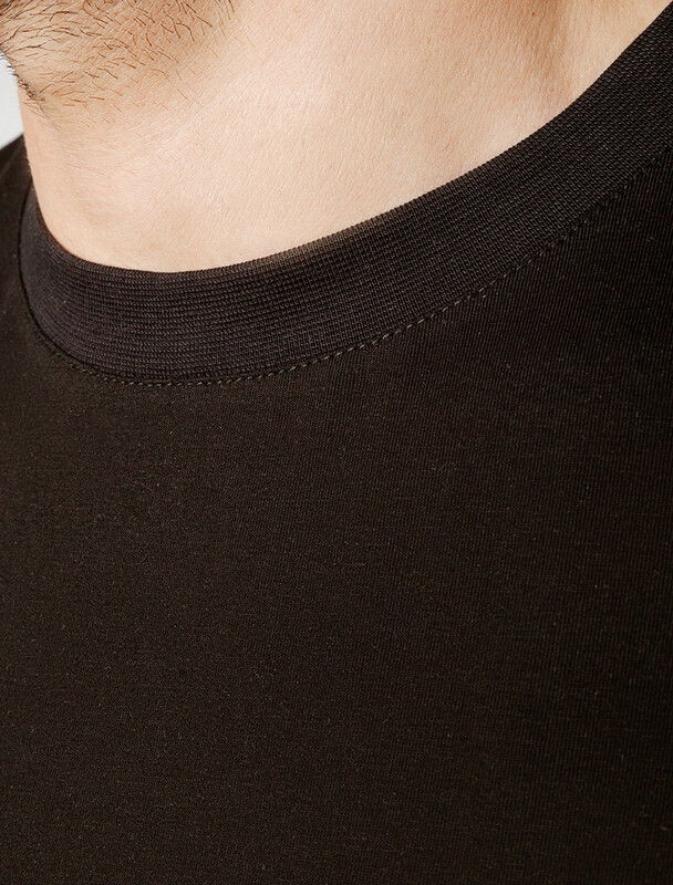 Футболка силуэта slim fit выполнена из премиального хлопка. Мягкая хлопковая ткань приятно ощущается на коже и хорошо пропускает воздух. Ткань содержит эластан, за счет чего тянется и хорошо сидит по фигуре. Не теряет форму после многократных стирок и сохраняет форму в течении долгого времени. Базовая модель дополнена сбоку вшитым логотипом бренда из эко-кожи.