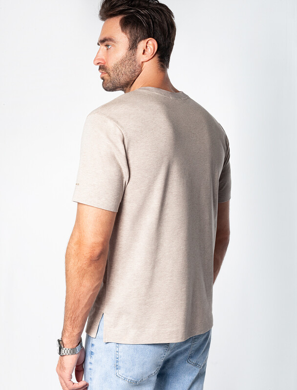 Футболка силуэта slim fit выполнена из премиального хлопка. Мягкая хлопковая ткань приятно ощущается на коже и хорошо пропускает воздух. Ткань содержит эластан, за счет чего тянется и хорошо сидит по фигуре. Не теряет форму после многократных стирок и сохраняет форму в течении долгого времени. Базовая модель дополнена сбоку вшитым логотипом бренда из эко-кожи.