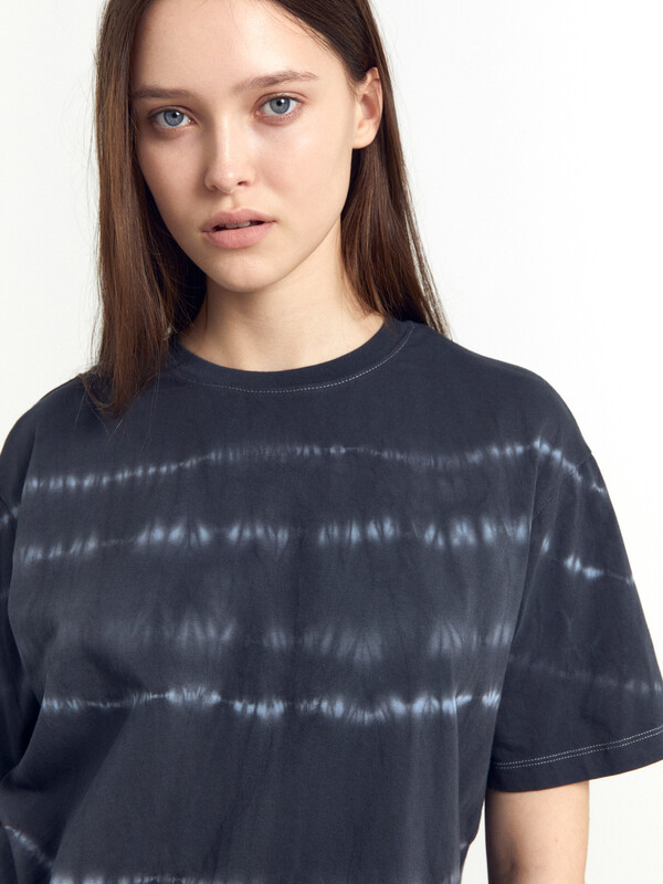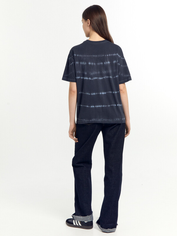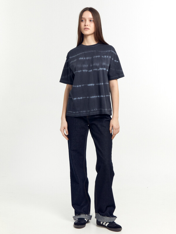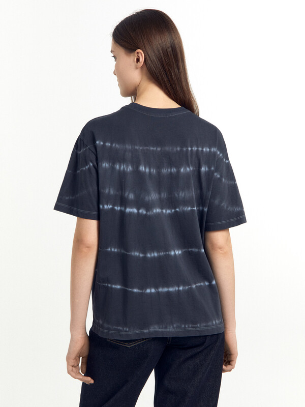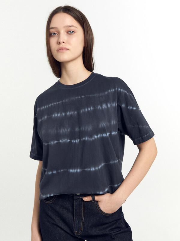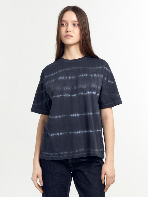 Хлопковая футболка свободного силуэта из трикотажного полотна кулирка. Горловина круглой формы. Свободу движений гарантируют спущенная линия плеча и углубленная пройма. Рукава широкие, чуть выше локтя. Стильная модель!