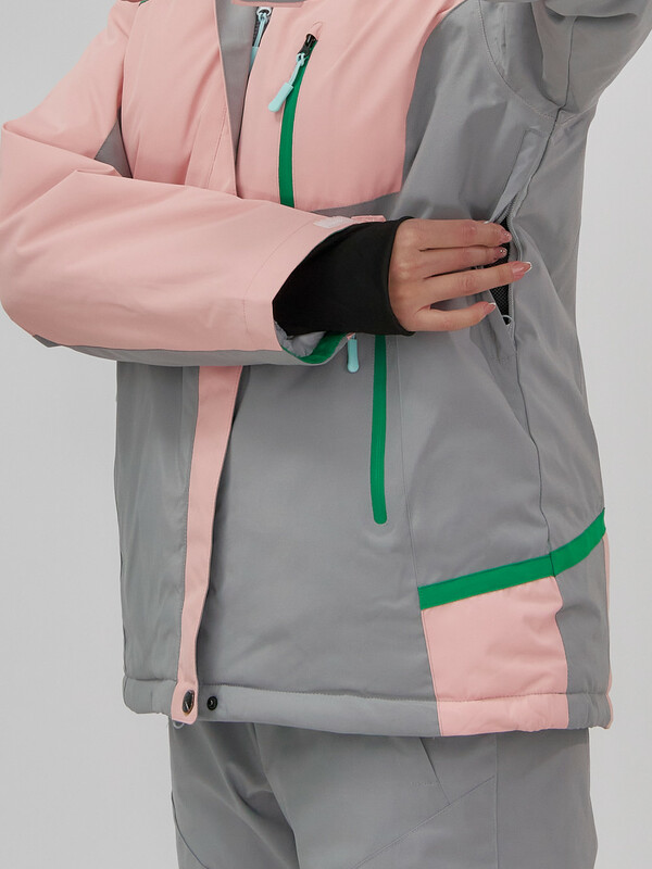 Горнолыжная куртка женская зимняя персикового цвета 709P