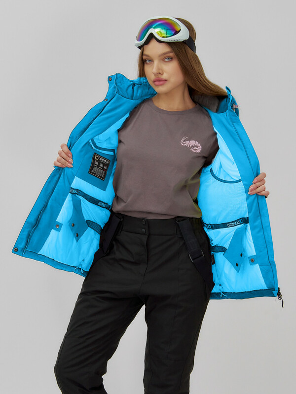 Главная страница - Каталог - Женская одежда оптом - Женская верхняя одежда - Женская верхняя одежда осень-зима - Горнолыжная куртка женская зимняя синего цвета 7015_1S