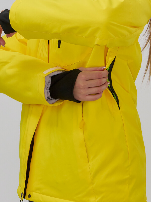 • Эластичные полуперчатки: Прямые рукава оснащены полуперчатками с прорезью для пальца, что обеспечивает удобство и защиту от холода. Планка на липучках надежно фиксирует рукав, предотвращая попадание снега.