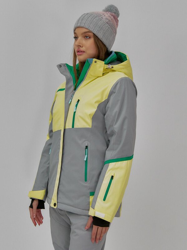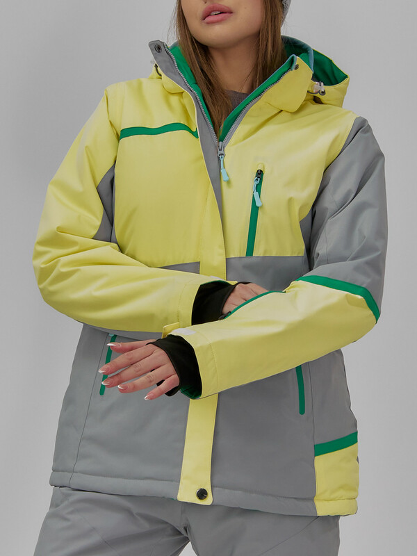 Главная страница - Каталог - Женская одежда оптом - Женская верхняя одежда - Женская верхняя одежда осень-зима - Горнолыжная куртка женская зимняя желтого цвета 709J