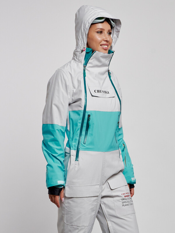 Главная страница - Каталог - Женская одежда оптом - Женская верхняя одежда - Женская верхняя одежда осень-зима - Горнолыжный комбинезон женский зимний голубого цвета 2320Gl