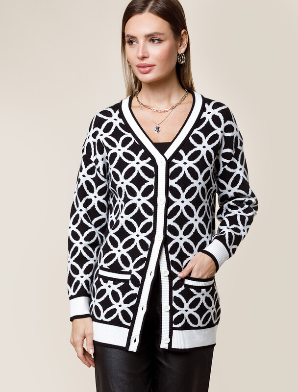 Кардиган жаккардовой вязки выполнен из нежной пряжи на основе вискозы с добавлением кашемира. Мягкая модель не раздражает кожу, приятно ощущается на теле и поддерживает комфортный микроклимат. Совет стилиста: модель гармонично впишется в любой гардероб, добавив образу выразительности. Сочетайте с однотонными брюками, юбкой, платьем или джинсами