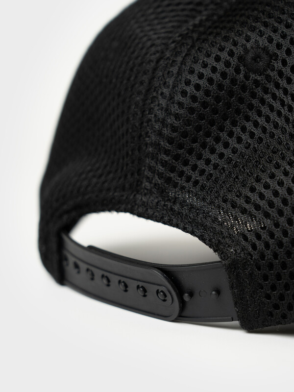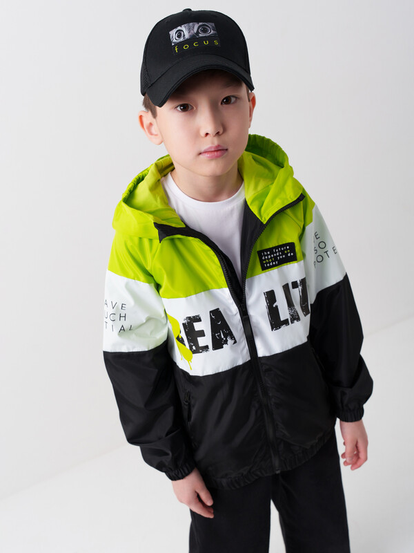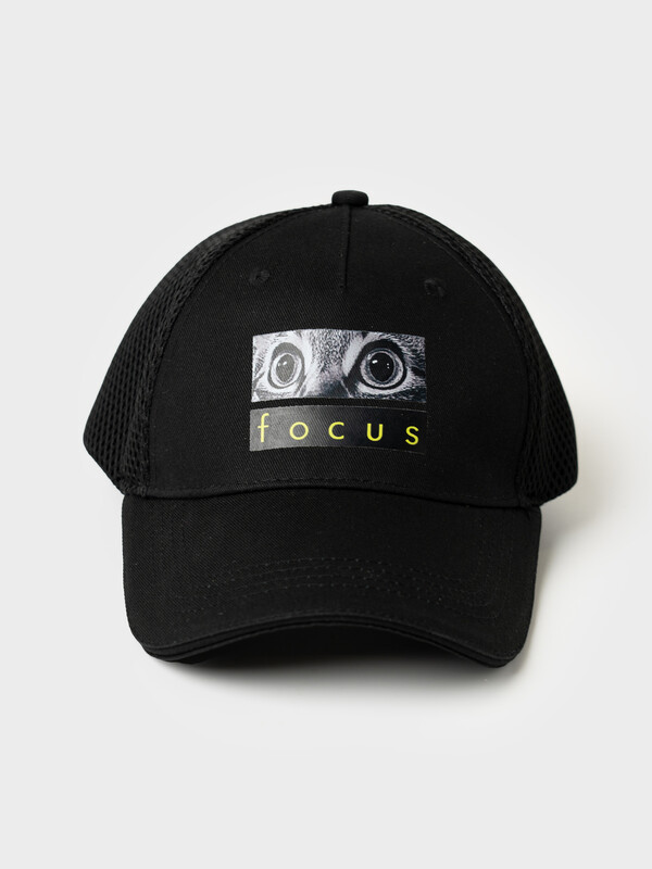 Бейсболка для мальчика подростка. Передняя часть изделия сделана из плотной хлопковой ткани, а боковые и задние панели — из сетки, которая обеспечивает вентиляцию. Козырек изогнутый. На передней панели расположен выразительный принт с изображением глаз и надписью. Регулируемая пластиковая застежка на кнопках сзади позволяет подогнать размер.