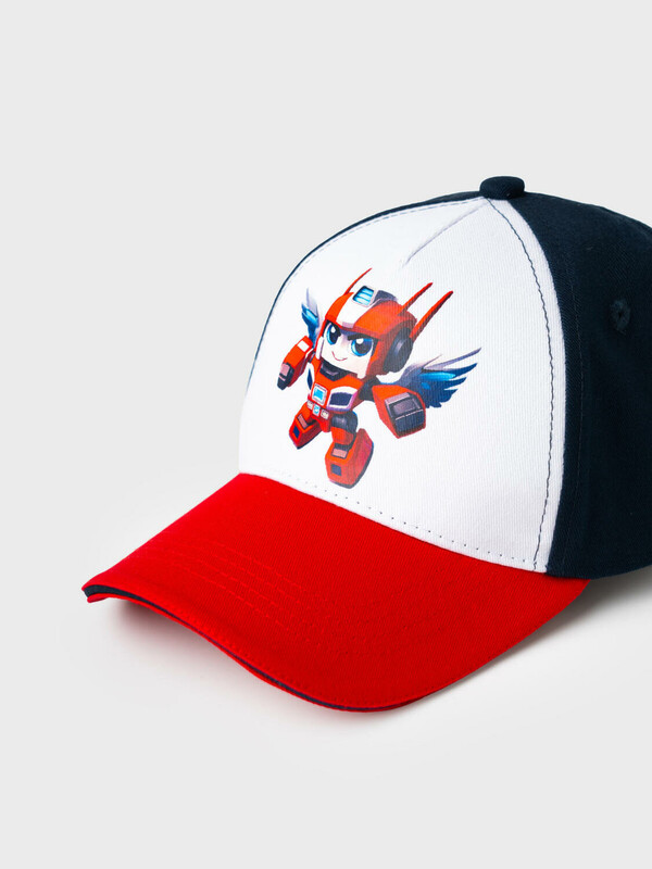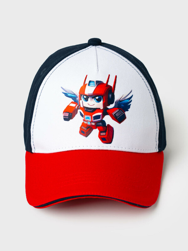 Бейсболка детская для мальчика. На изогнутом козырьке контрастная декоративная строчка. Спереди размещён крупный рисунок, а сзади — логотип. Размер можно отрегулировать с помощью застежки на липучке. Есть вентиляционные отверстия и верхняя декоративная кнопка.
