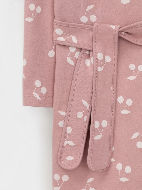 Халат с тонким капюшоном. Изготовлен из набивного хлопкового трикотажа футер петля. С помощью пояса можно регулировать посадку по фигуре. Сверху застёжка на кнопку. Края изделия обработаны мягким кантом. На боку накладной карман, уходящий в шов. Оригинальная набивка выполнена из стойких гипоаллергенных текстильных красителей. Все трикотажные полотна производятся в соответствии с нормами швейцарского сертификата ЭкоТекс.