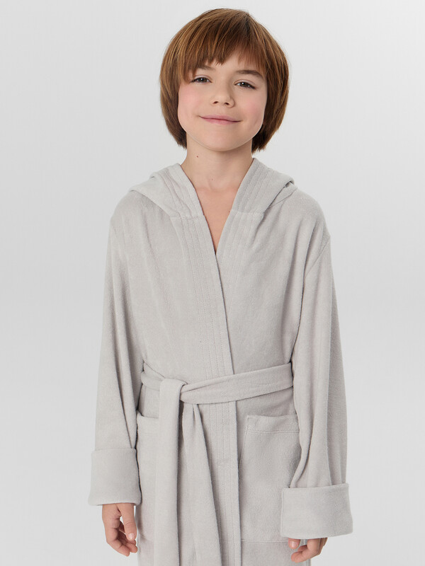 Концы пояса свободно завязываются. Карманы настрочные. Рукава длинные. По низу рукавов манжеты. Спинка цельнокроеная. Низ изделия обработаны на 2-х игольной плоскошовной машине. По низу рукавов манжеты.