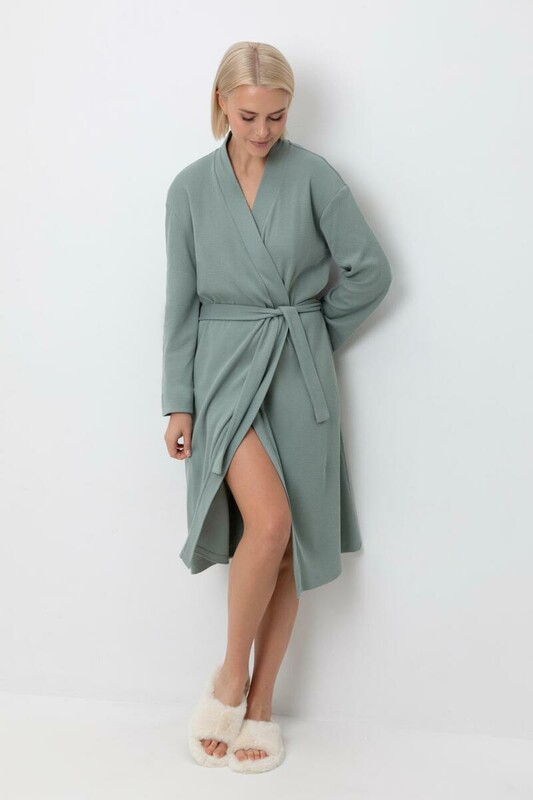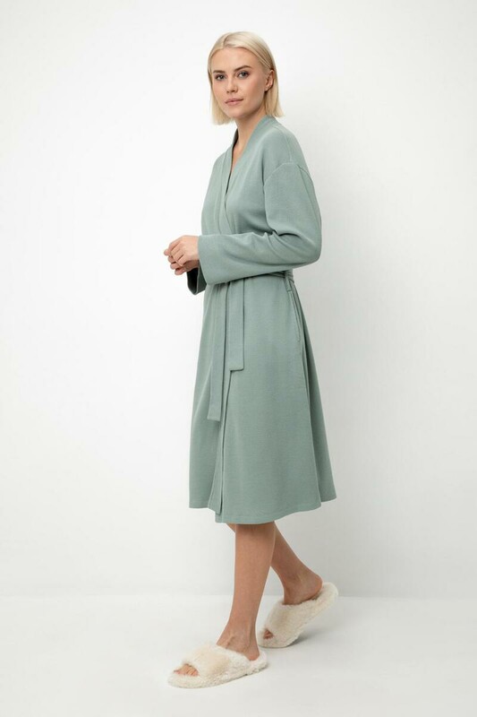 Халат из мягкого объемного трикотажа с добавлением эластичных волокон подарит атмосферу домашнего уюта и комфорта.