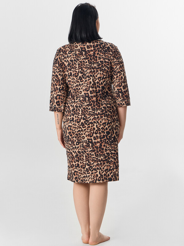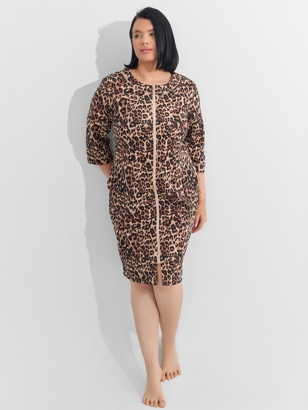 Универсальный бежевый оттенок в сочетании с леопардовым принтом создает элегантный образ, а свободный крой подойдет для разных ситуаций. Это прекрасный вариант для повседневной носки дома, отдыха или специальных случаев, дарящий чувство уюта и заботы о себе.