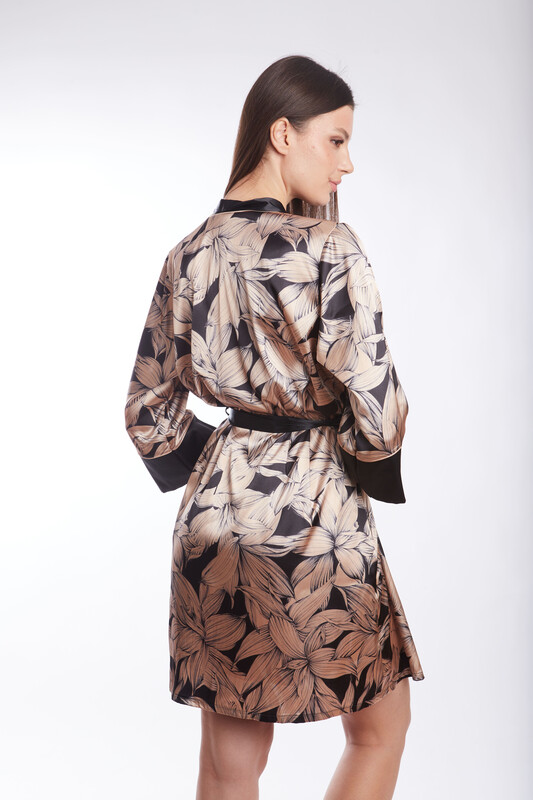 ХАЛАТ ЖЕНСКИЙ Лесная мелодия (170-84-92, черный набивной)(Milavitsa)